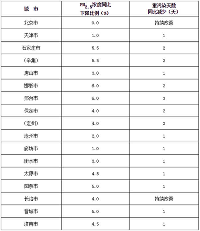 主要目標:穩中求進,推進環境空氣質量持續改善,京津冀及周邊地區全面完成2019年環境空氣質量改善目標,協同控制溫室氣體排放,秋冬季期間(2019年10月1日至2020年3月31日)PM2.5平均濃度同比下降4%,重度及以上污染天數同比減少6%(詳見附件1)。