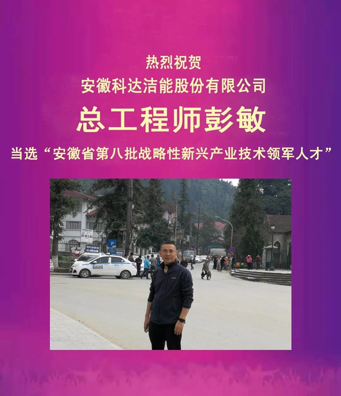安徽科達(dá)潔能總工程師彭敏榮獲“安徽省第八批戰(zhàn)略性新興產(chǎn)業(yè)技術(shù)領(lǐng)軍人才”稱號