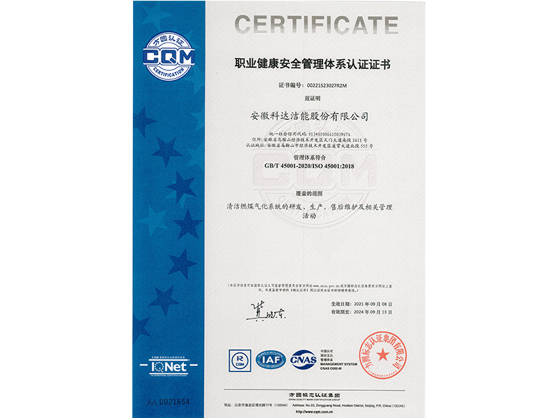 職業(yè)健康安全管理體系證書